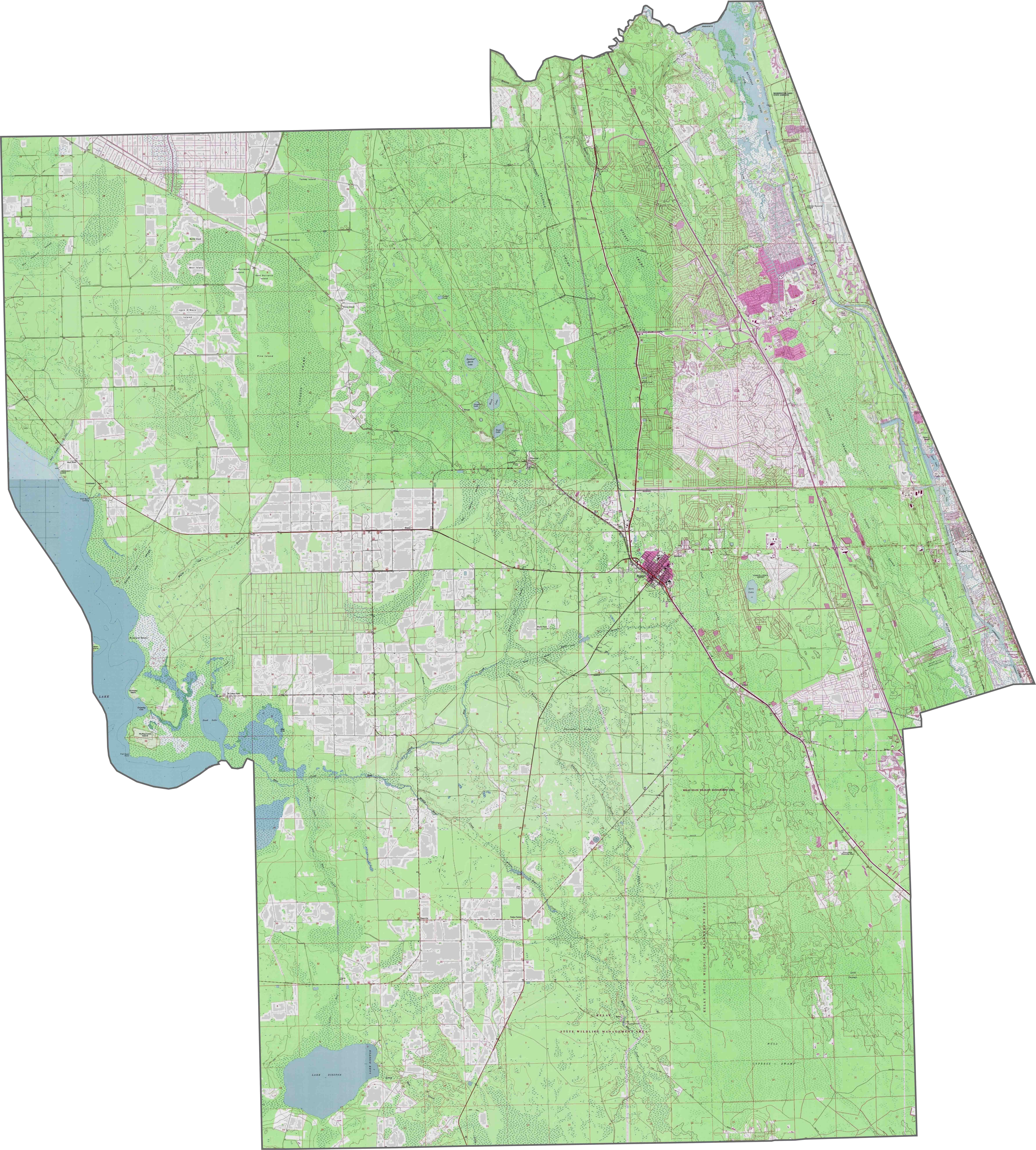 Flagler County stands out on our topographic map with its Atlantic coastline, Intracoastal Waterway, and urban areas. Palm Coast’s planned community grid is clearly visible. Our zoom tool highlights Bulow Creek State Park and elevation contours.