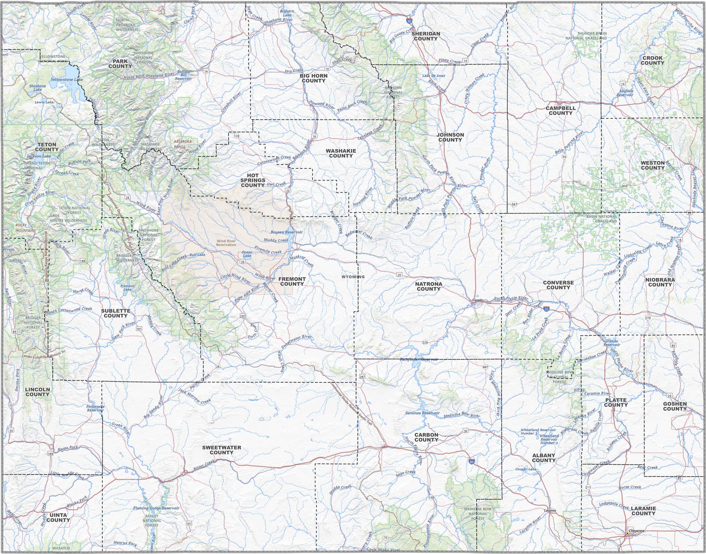 Wyoming has mountains in the west, high plains in the east, and places like Yellowstone and the Grand Tetons thrown in for good measure. You’ll notice that each county has its own mix of these features.